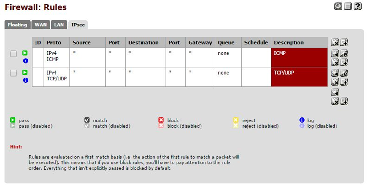 Before testing, let’s just allow communication between the two sides by accessing FIREWALL > RULES > IPSEC.