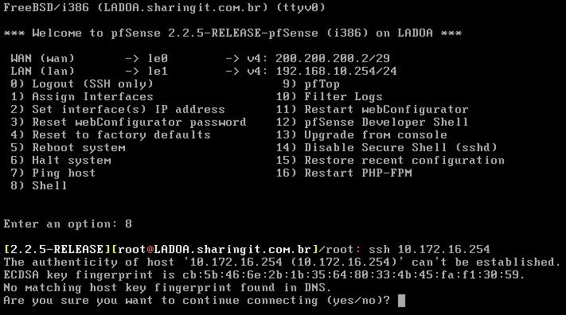 The second test is an SSH connection from one host to another. From HOST A, I communicated with HOST B using its LAN address, meaning LAN to LAN are “talking.”