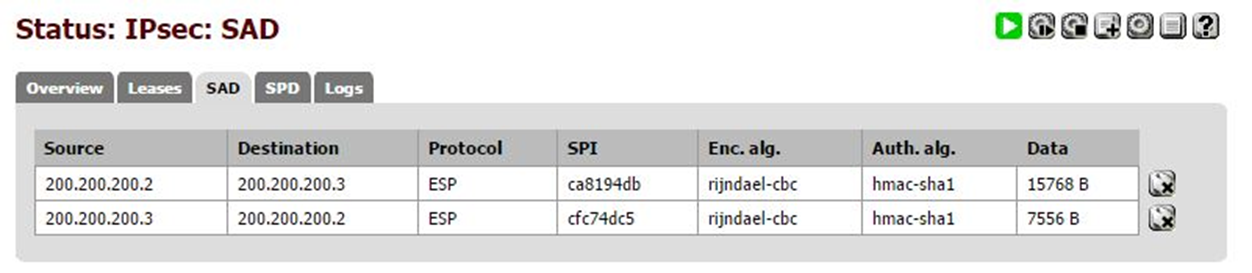The final test involves checking the amount of data traffic under the “Data” tab. If it is different from 0, it means that there is indeed traffic within our IPSEC tunnel.